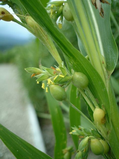 種子は出来ず葉の腋のムカゴが落ちて